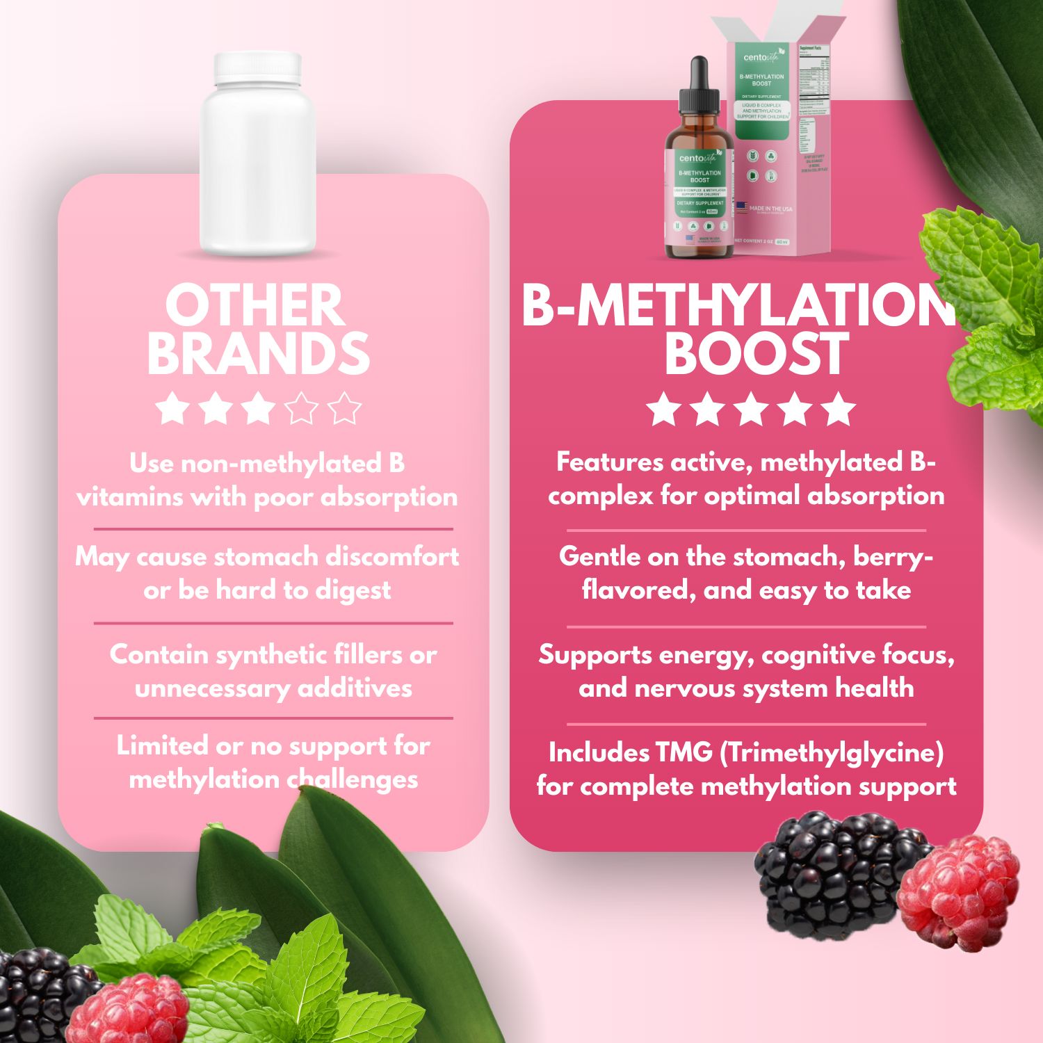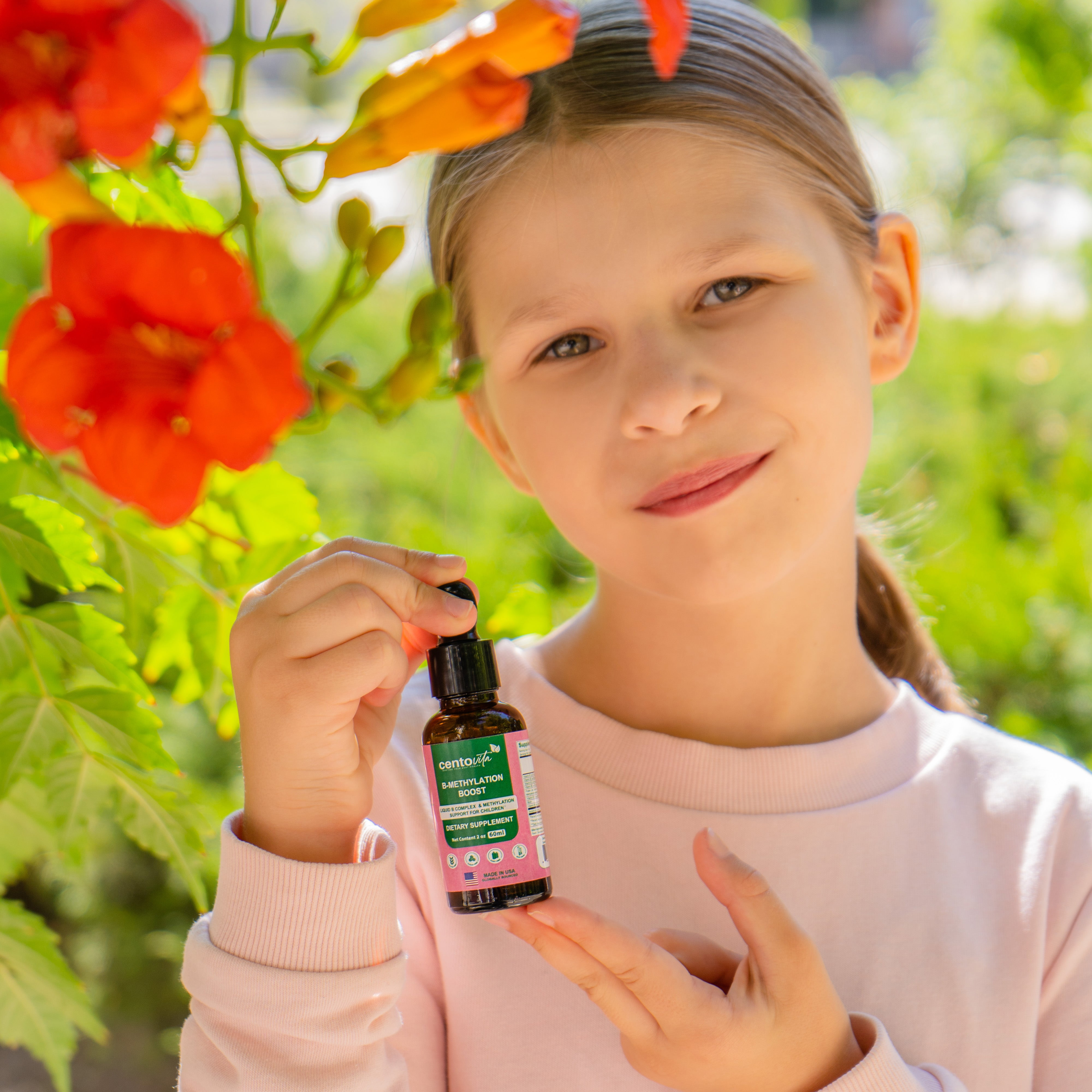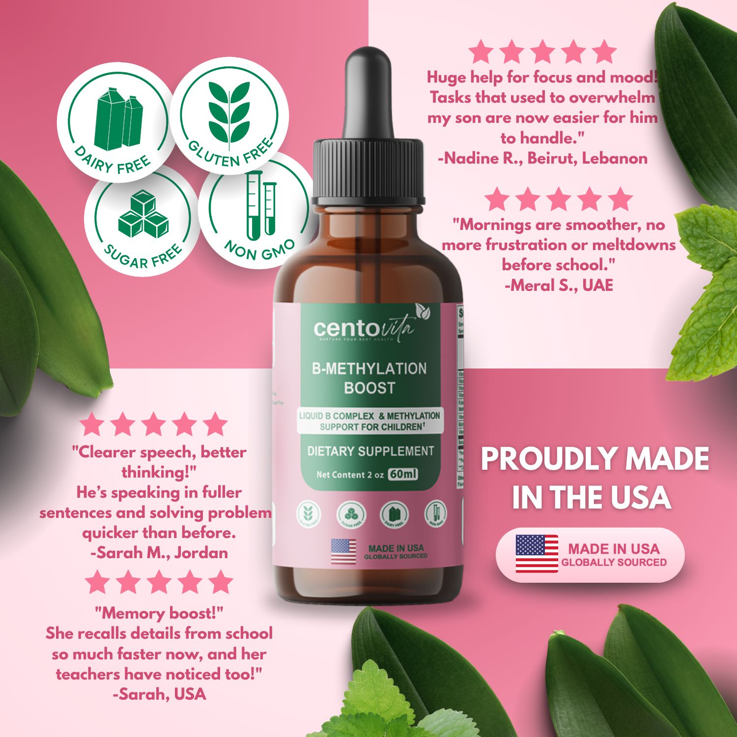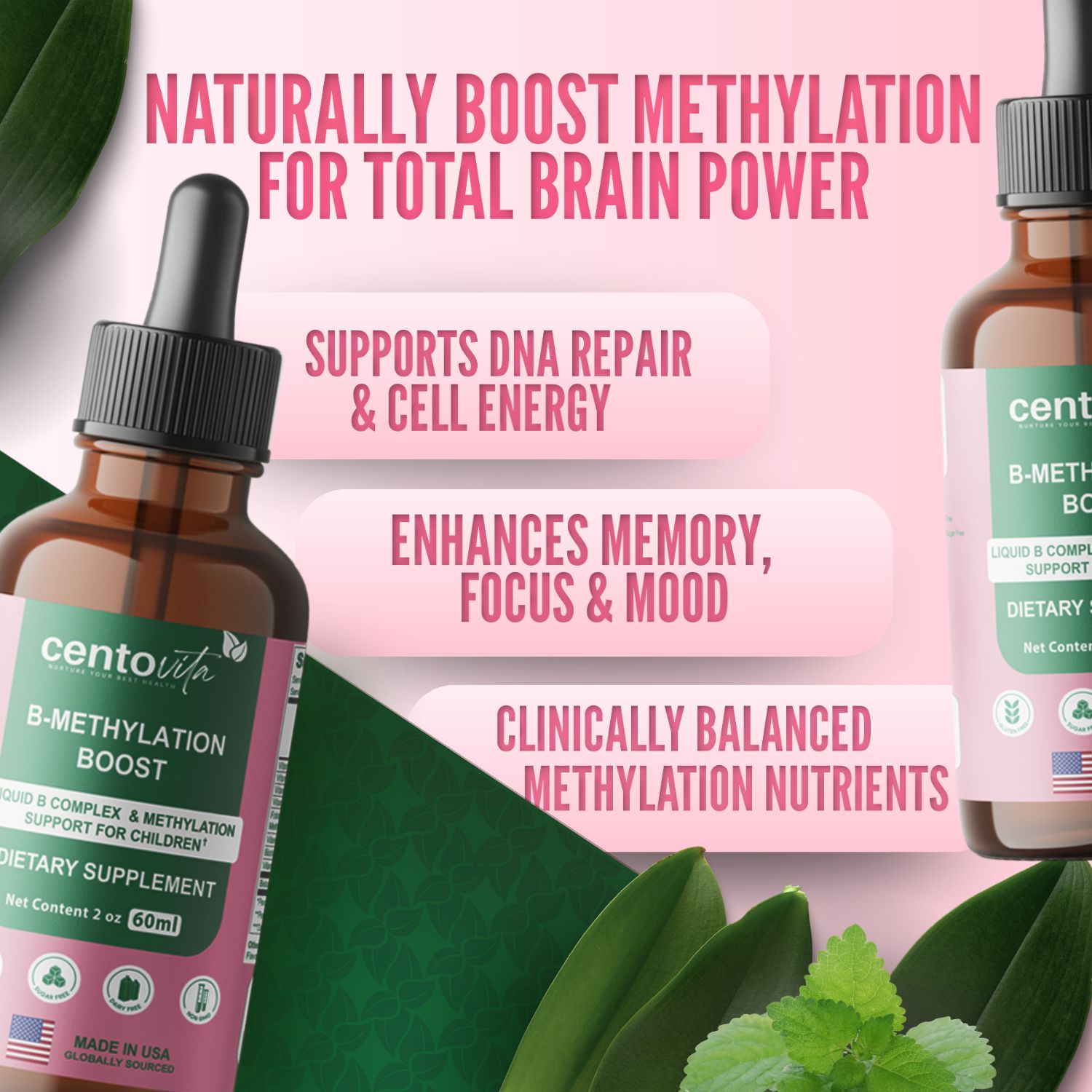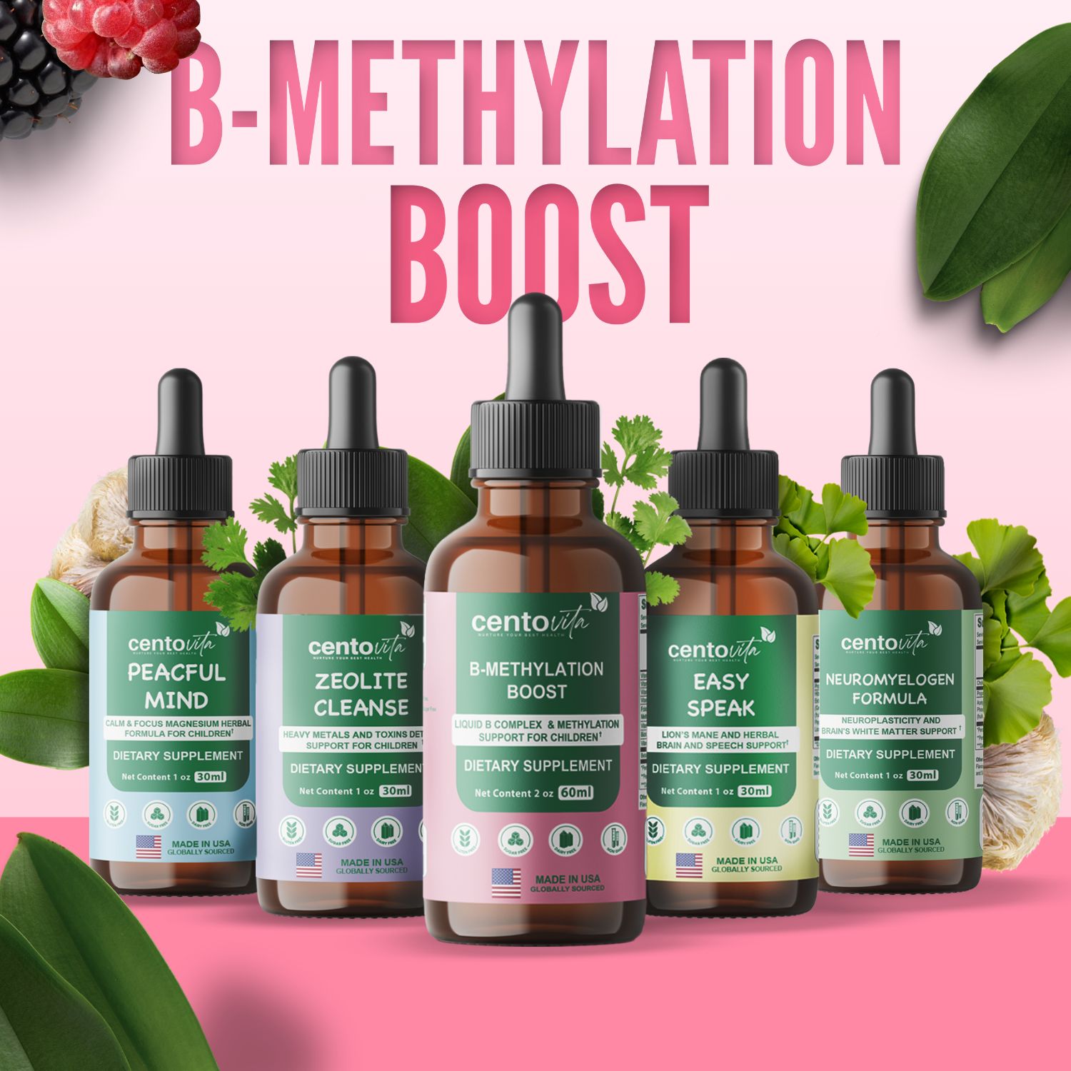 B-Methylation Boost: Liquid B Complex and Methylation Support for Children is an advanced, child-friendly liquid supplement specifically designed to support healthy methylation—a critical biochemical process that influences brain development, neurotransmitter balance, detoxification, and overall cognitive function. Impaired methylation is frequently observed in children with Autism Spectrum Disorder (ASD), ADHD, and other neurodevelopmental challenges, often due to genetic variations such as MTHFR polymorphisms.