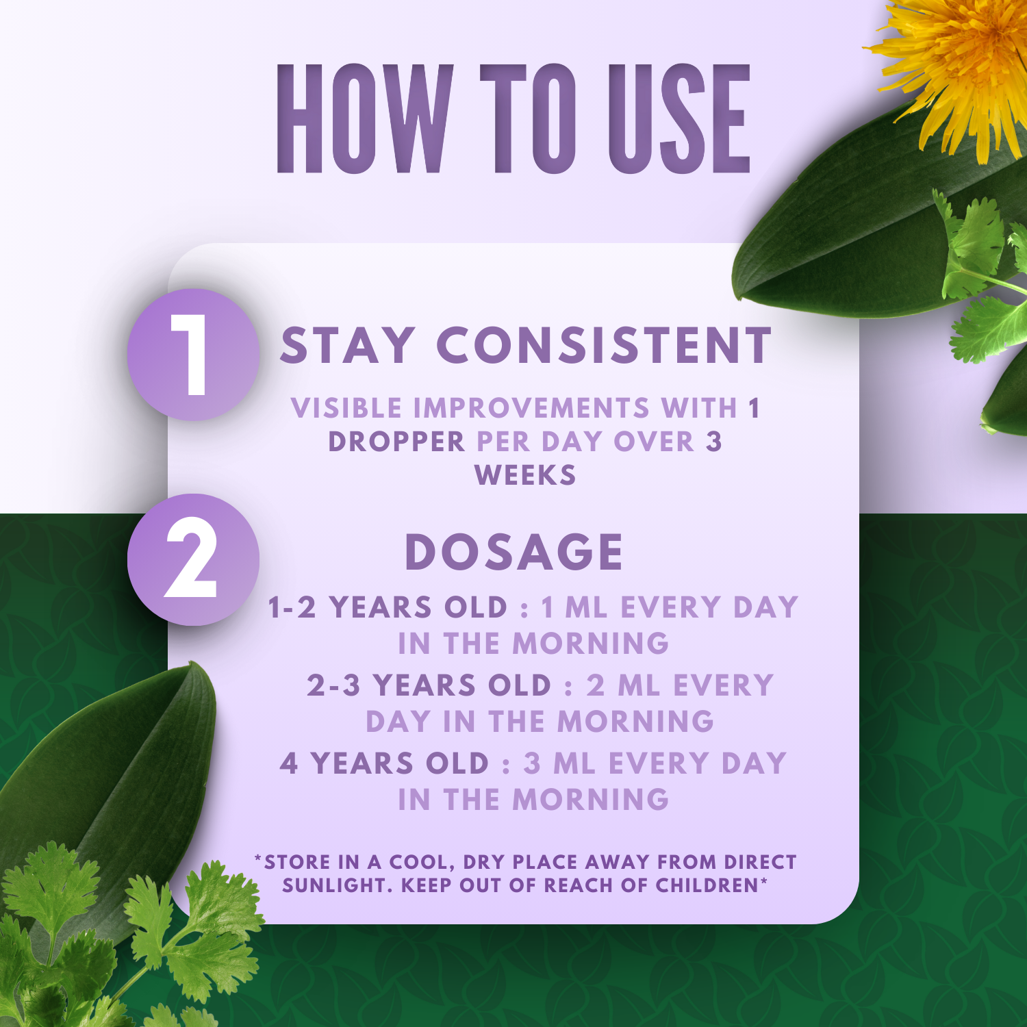 Consult a healthcare professional before use, especially if your child has any medical conditions or is taking medication. Not intended for use by children under 1 year of age. Discontinue use and consult a healthcare professional if any adverse reactions occur.